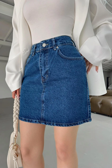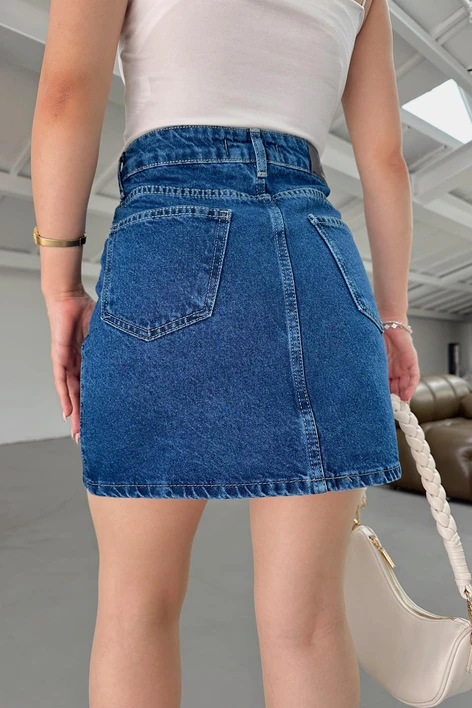 Kısa Kot Etek Koyu Mavi