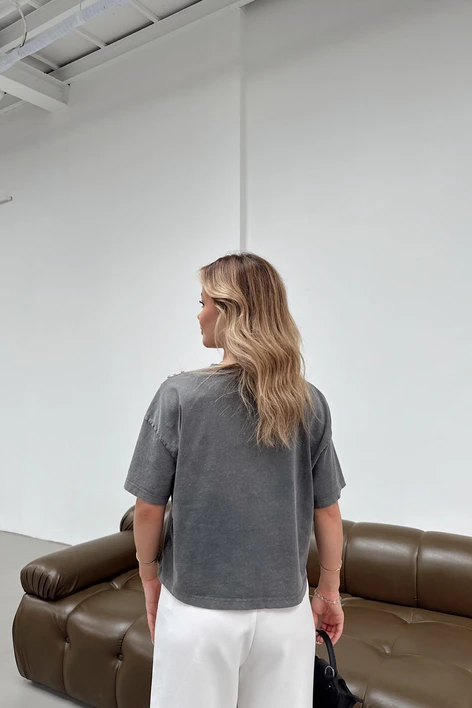 Yıkamalı Taş Detaylı Tshirt Antrasit