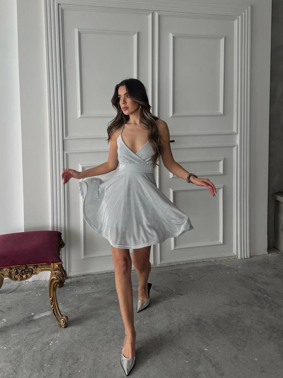 Çapraz Bağlı Sırt Dekolteli Simli Elbise