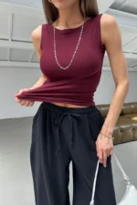 Halter Yaka Taş Baskılı Atlet Beyaz
