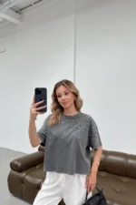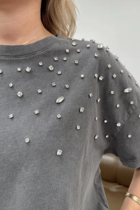 Yıkamalı Taş Detaylı Tshirt Antrasit